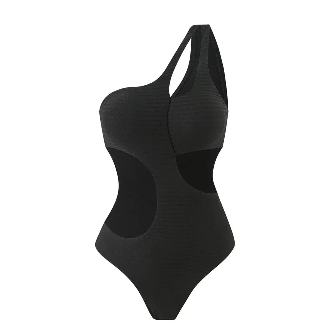 Odkryj niezwykły kostium kąpielowy w stylu jednoczęściowym, który harmonijnie łączy elegancję z nowoczesnym stylem. Asymetryczny design oraz wycięcia w talii sprawiają, że będziesz wyglądać olśniewająco na plaży lub przy basenie, podkreślając swoje atuty.