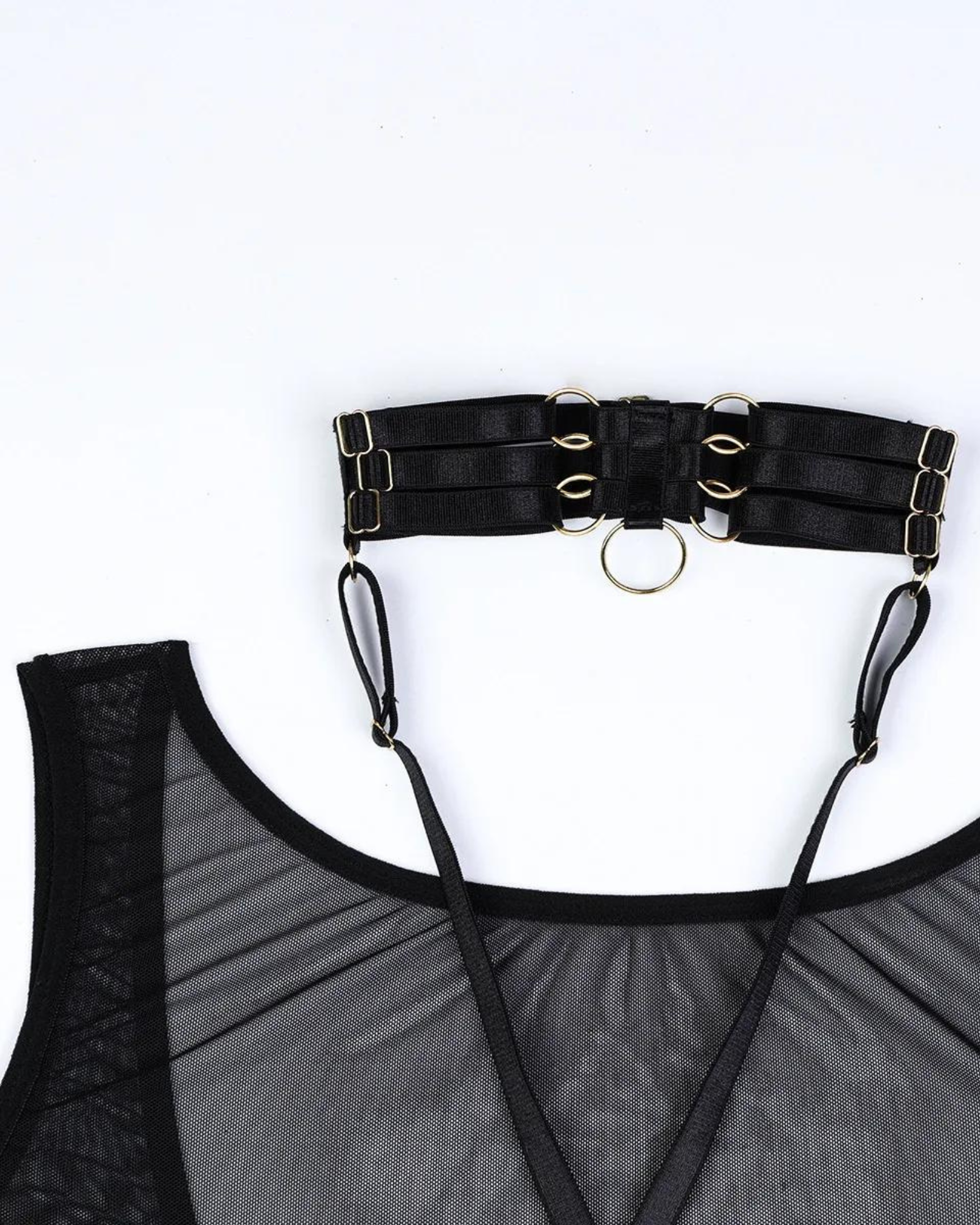 Prześwitujące body z paskami i chokerem