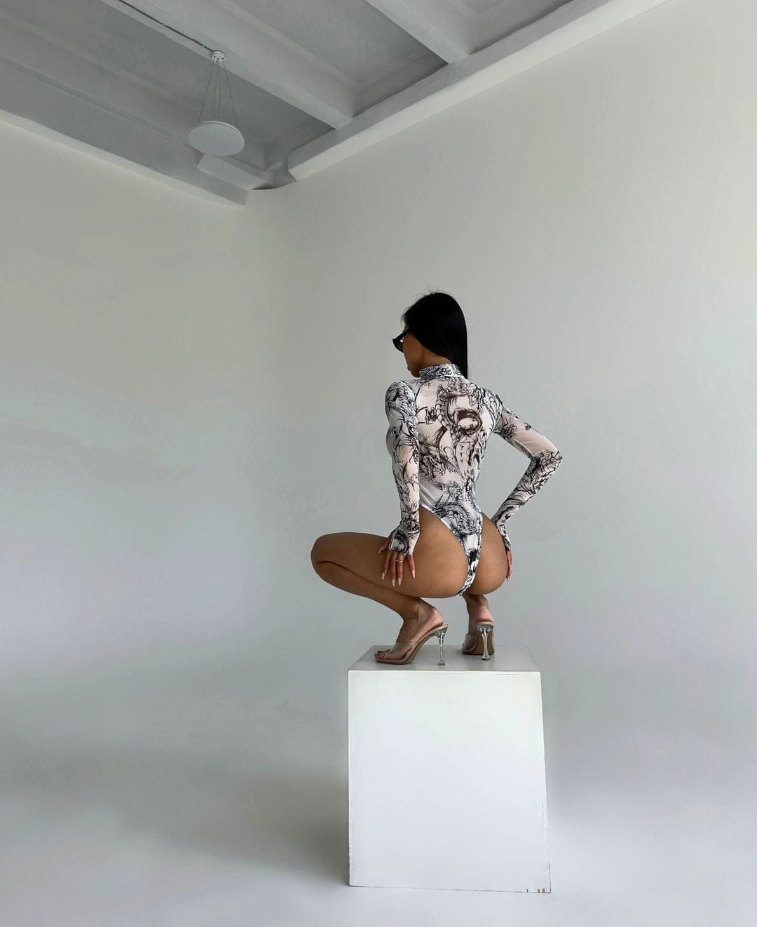 Przezroczysty materiał oraz długie rękawy sprawiają, że body jest doskonałym wyborem na różnorodne okazje, od codziennych stylizacji po wieczorne wyjścia. Wycięcia na kciuki i zapięcie w kroku nadają mu nowoczesny charakter, zapewniając jednocześnie komfort noszenia.