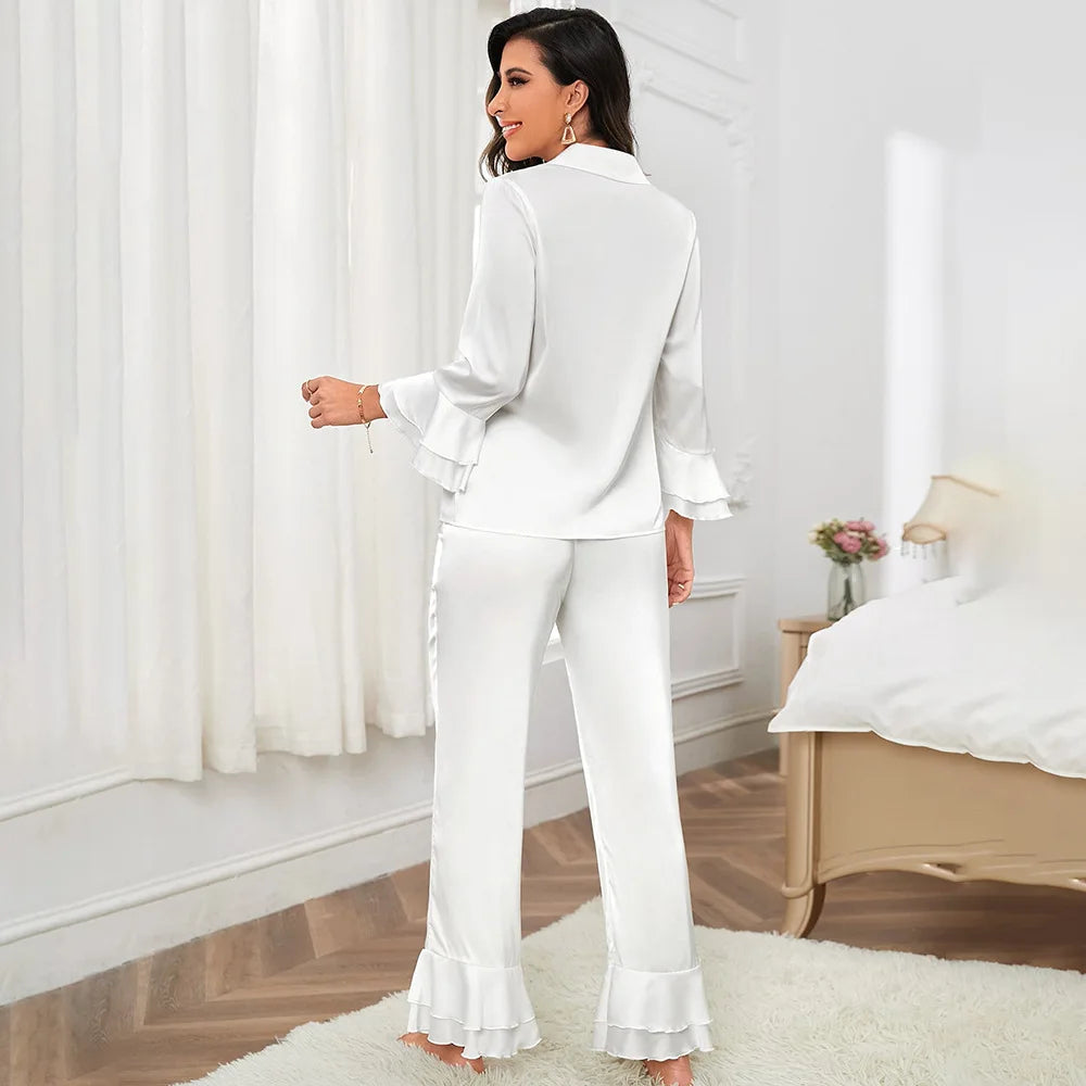 Dwuczęściowa piżama satynowa z falbanami