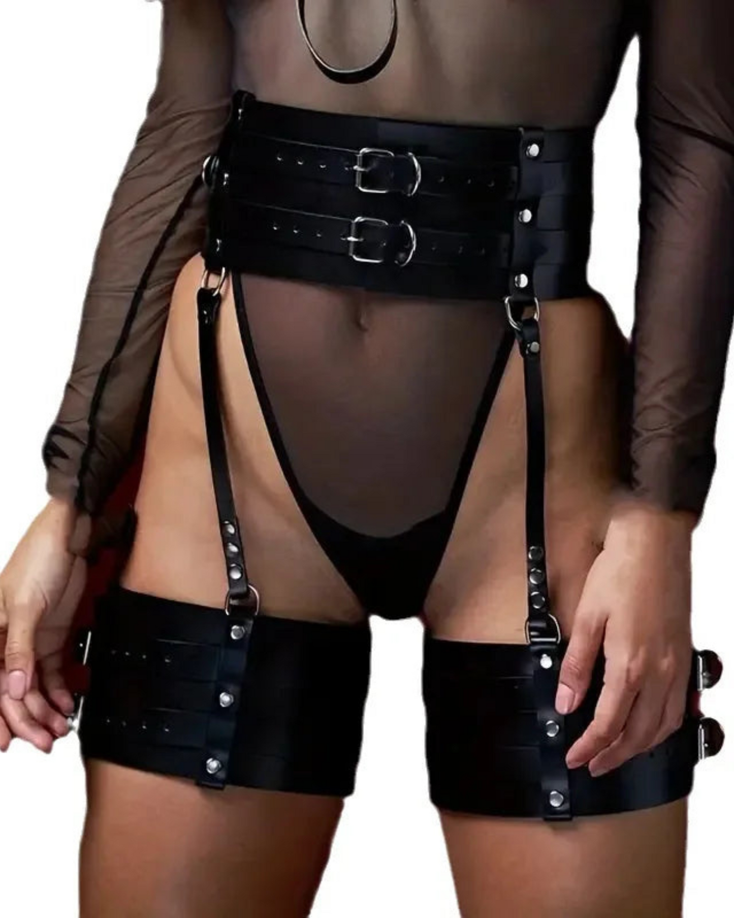 Skórzany harness na brzuch i uda