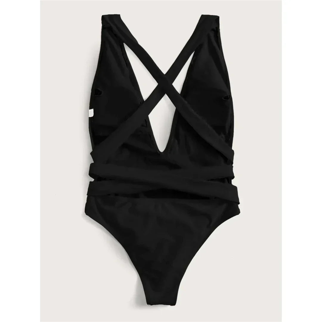 Jednoczęściowy strój kąpielowy z głębokim dekoltem w kształcie litery V
