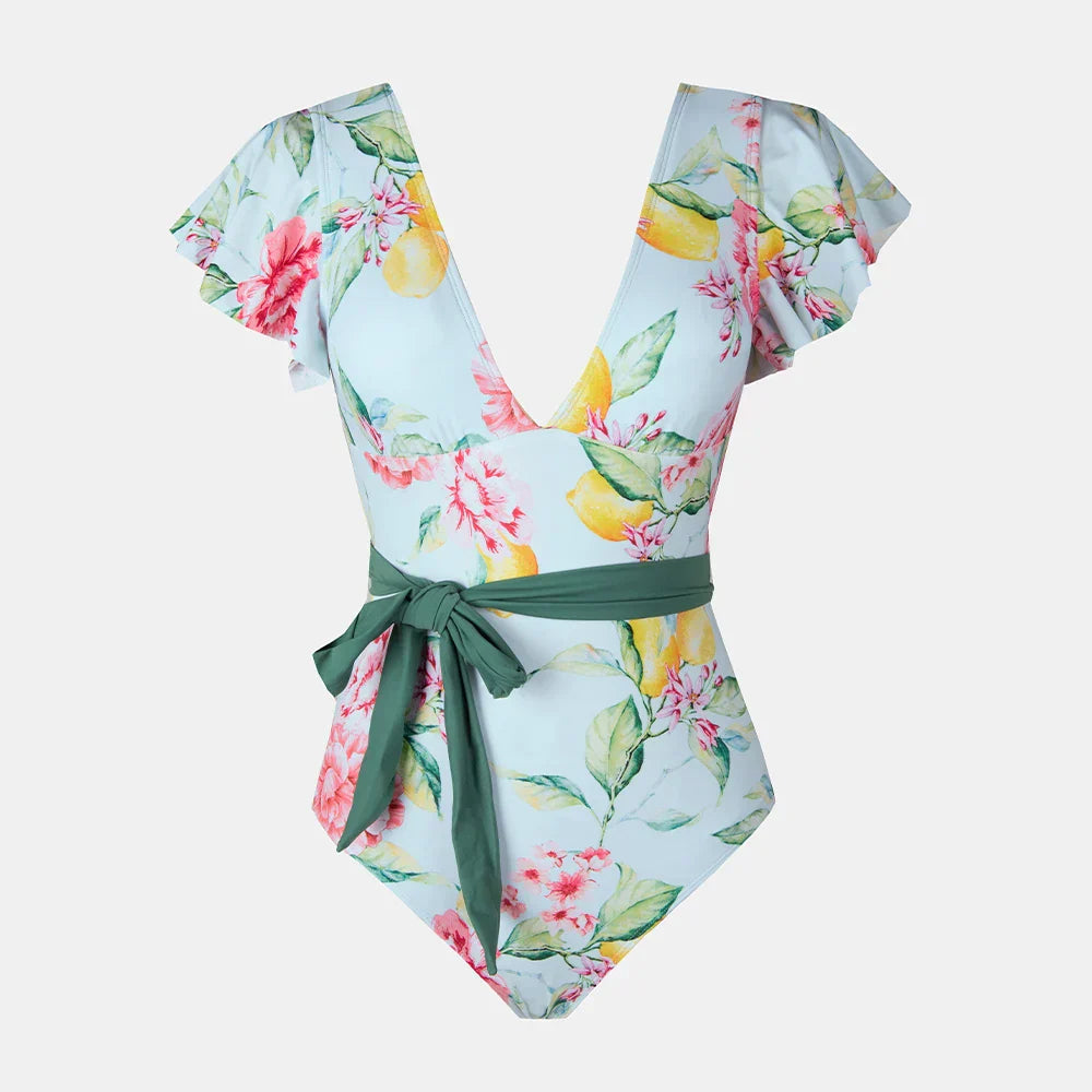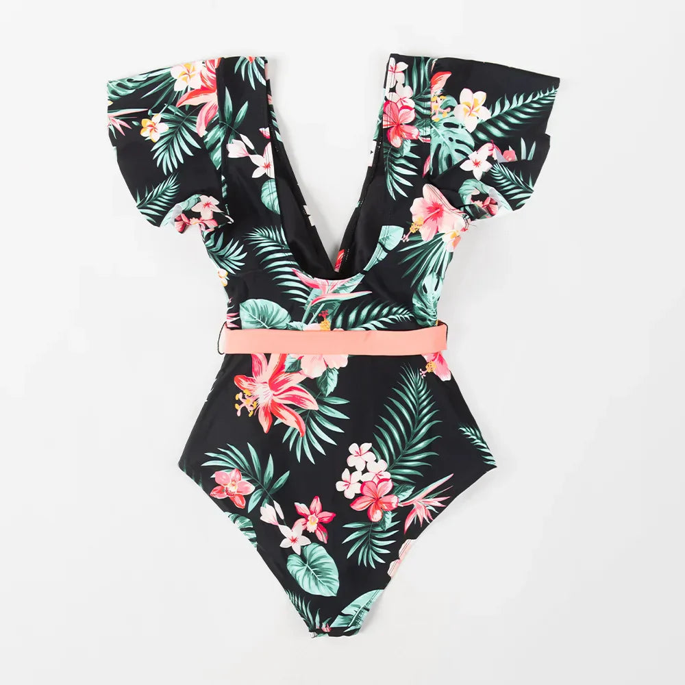 Jednoczęściowy strój kąpielowy z głębokim dekoltem w kształcie litery V
