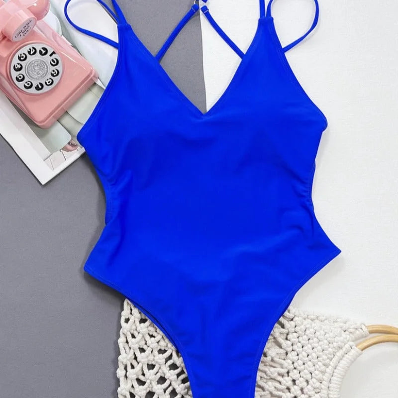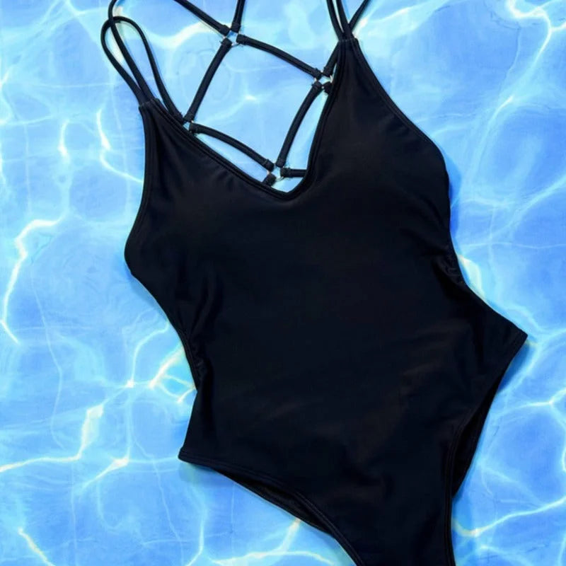 Jednoczęściowy strój kąpielowy z odkrytymi plecami
