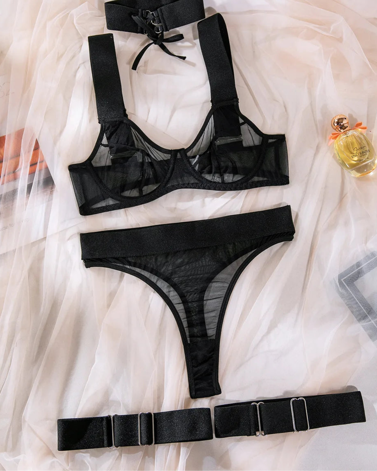 Komplet bielizny z szerokimi ramiączkami i chokerem