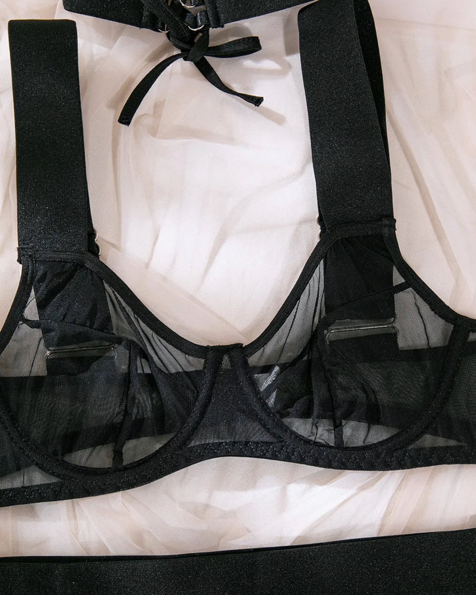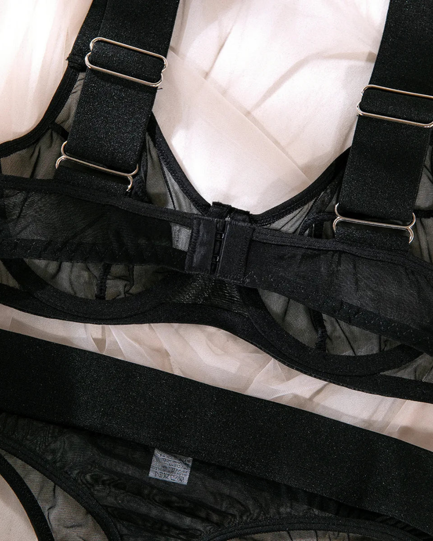 Przenieś się w świat minimalistycznej elegancji z tym wyjątkowym kompletem bielizny. To idealne połączenie prostoty i zmysłowości, stworzone z myślą o kobietach, które pragną wyrażać swój styl. Transparentny materiał subtelnie odsłania ciało, tworząc efektowne linie, które delikatnie podkreślają Twoje atuty.