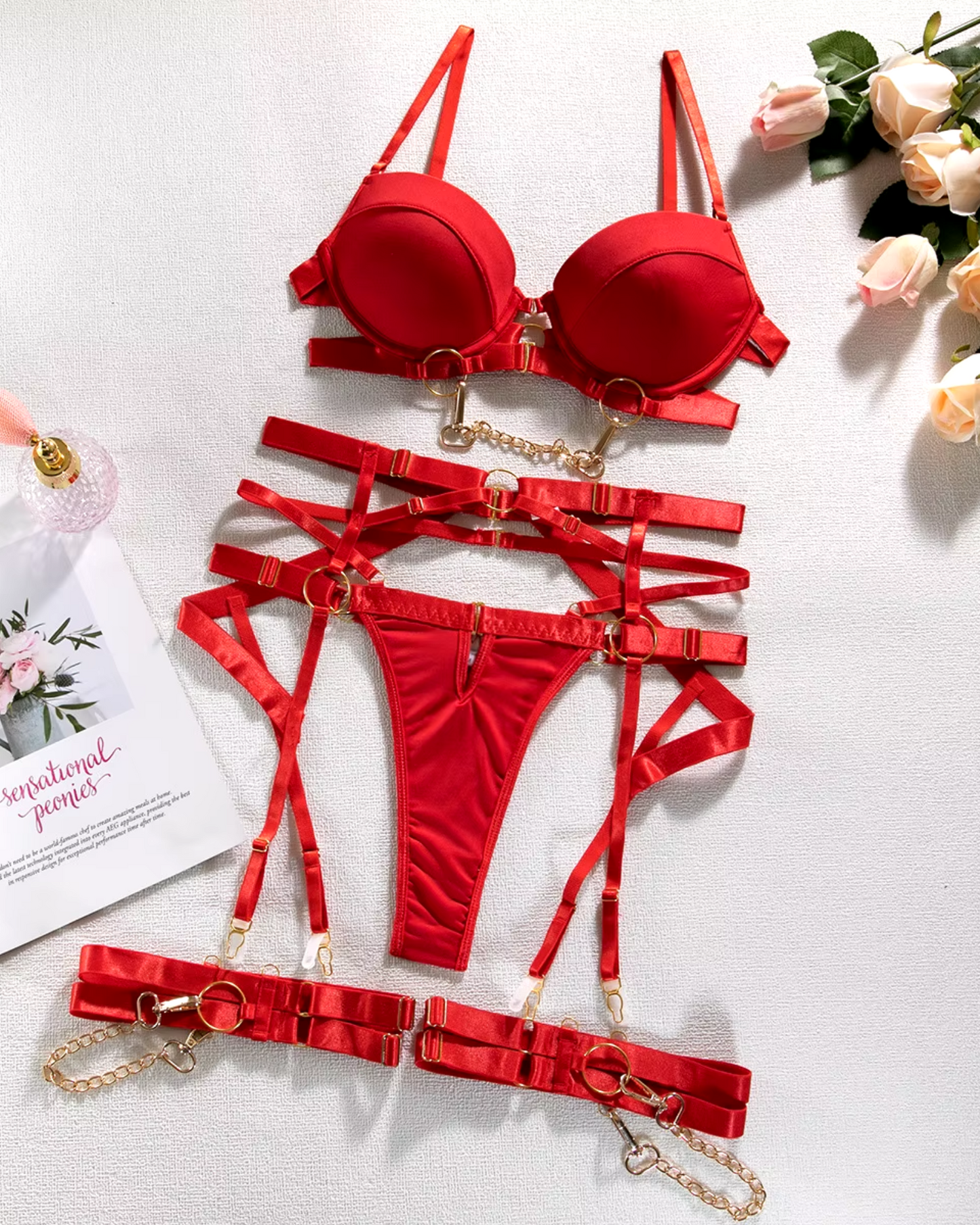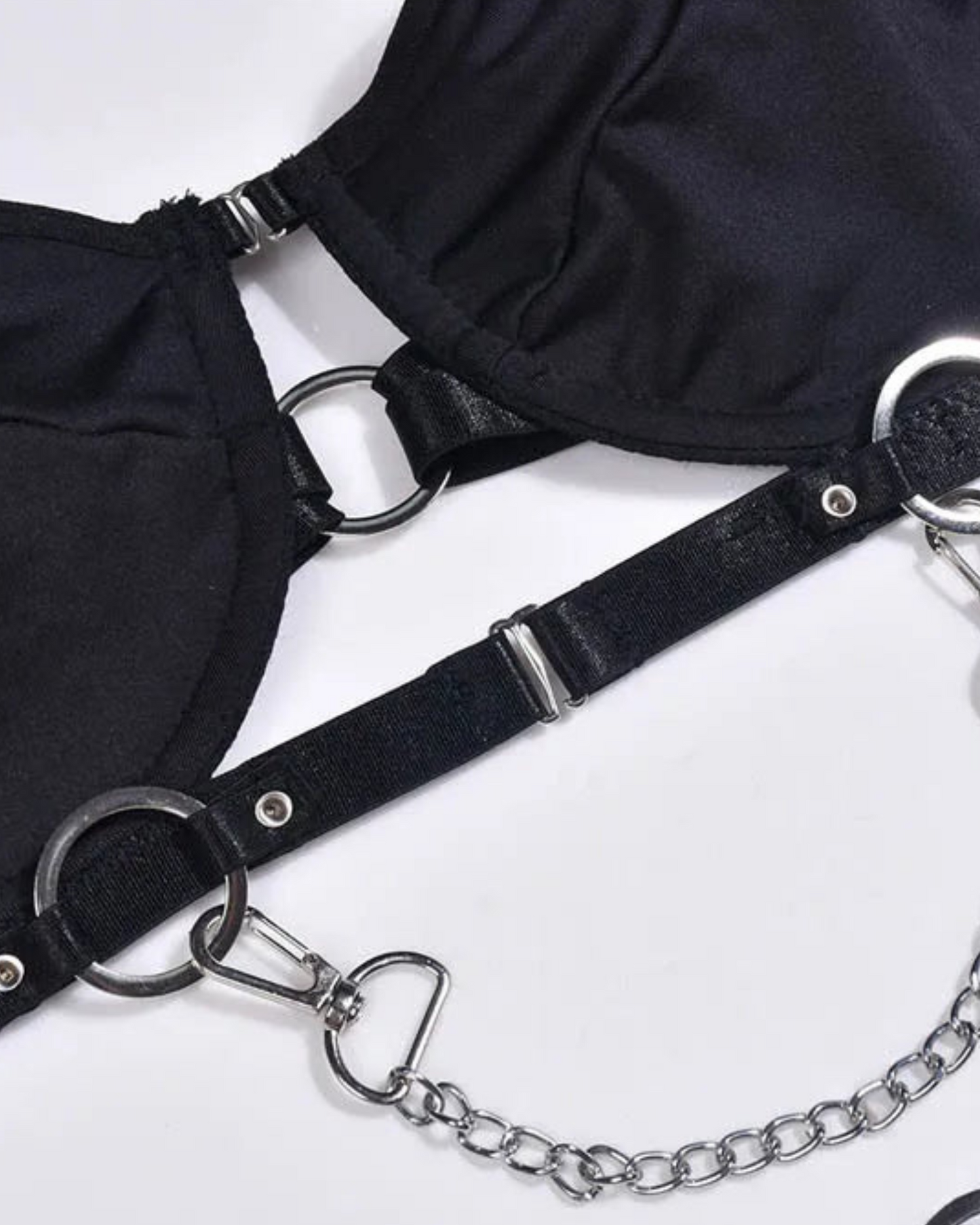 Komplet bielizny z metalowymi łańcuszkami i regulowanymi ramiączkami