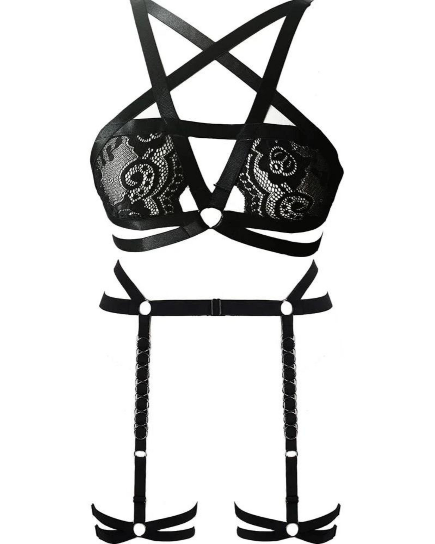 Regulowane paski zapewniają idealne dopasowanie, a wytrzymałe zapięcia gwarantują komfort noszenia. Koronkowe detale wprowadzają elegancję, a odważny design sprawia, że każda chwila w tej bieliźnie staje się wyjątkowa.