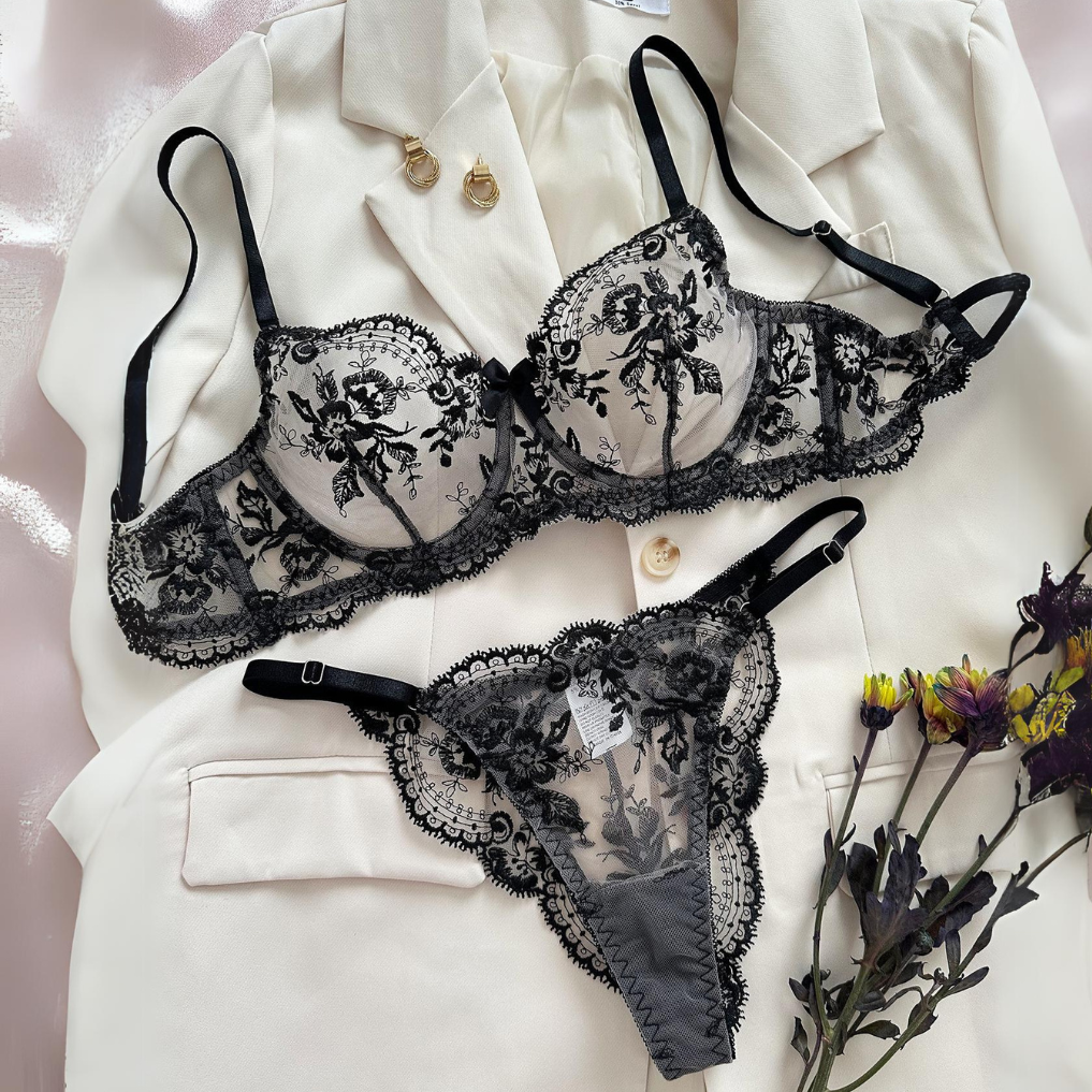 Zmysłowy komplet bielizny z haftem w kwiaty
