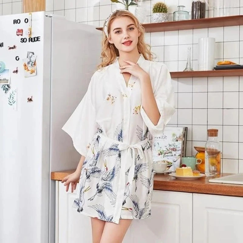 Spraw sobie luksusowy komfort i delikatność, sięgając po nasz peniuar z motywem ptaków już dziś!
