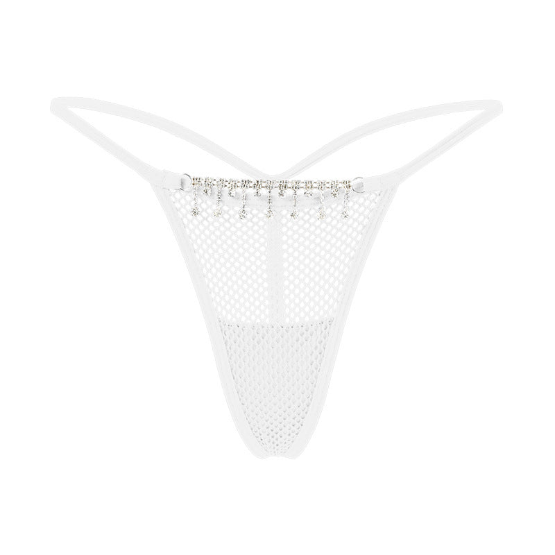Siateczkowe stringi z ozdobnym łańcuszkiem z cyrkoniami