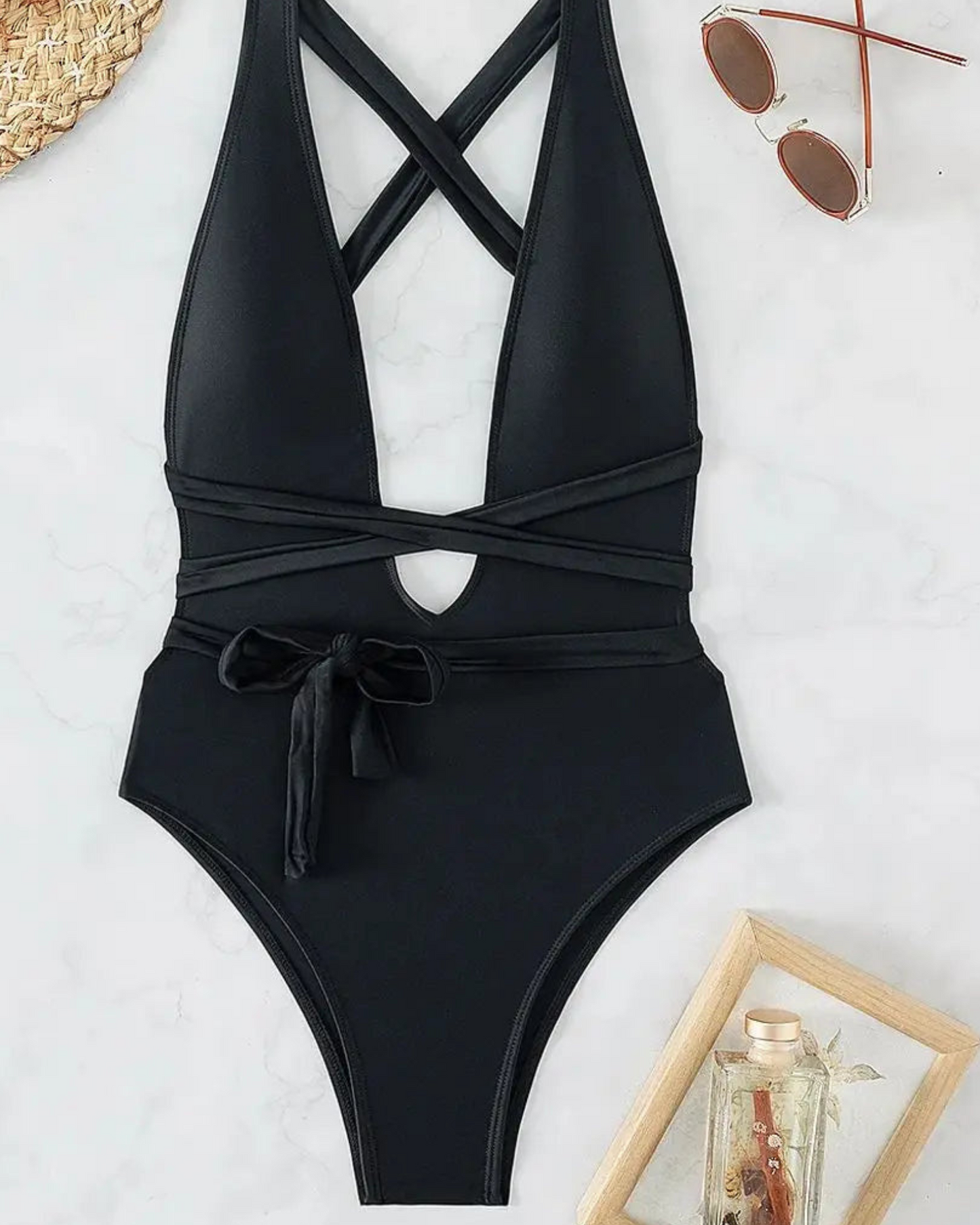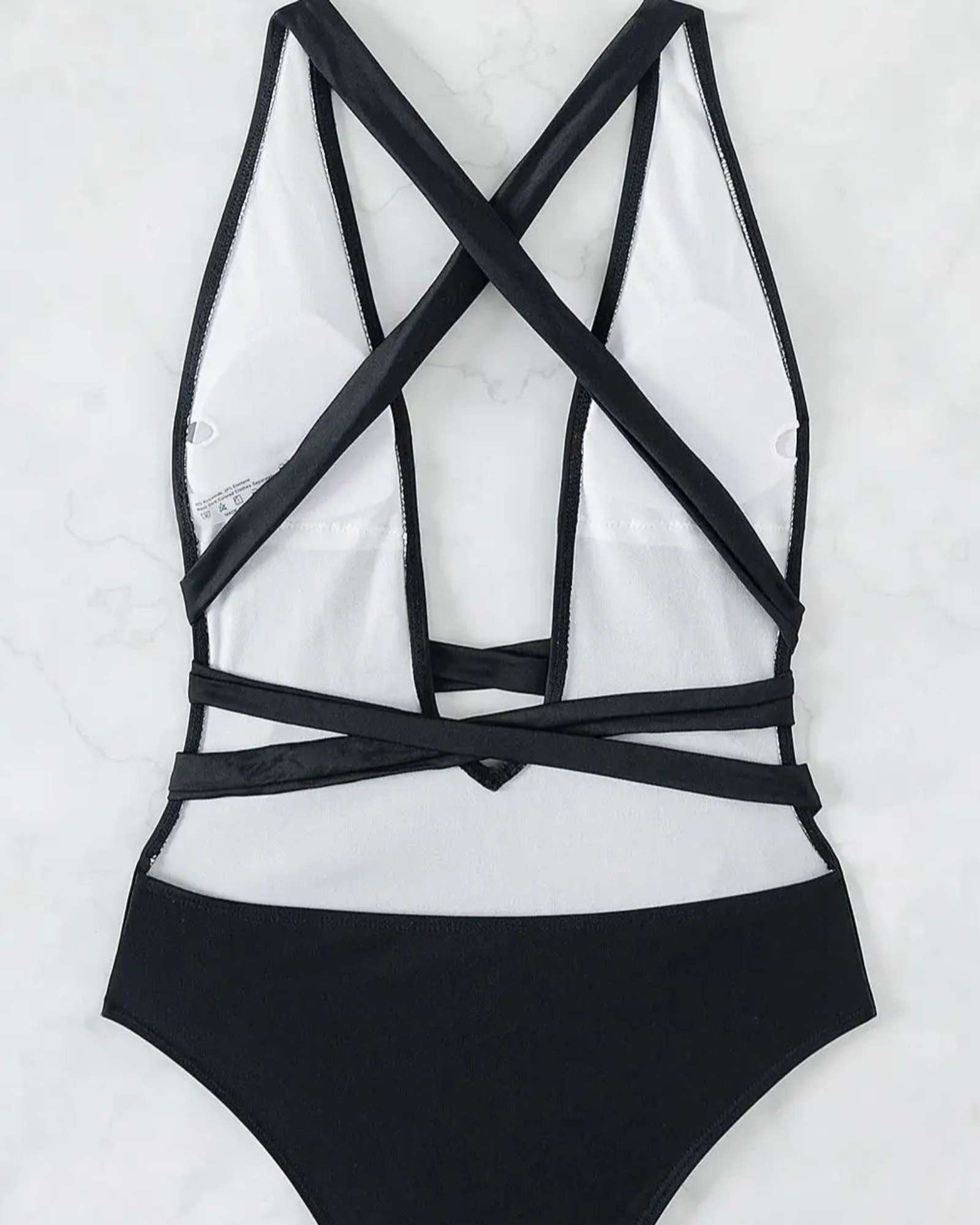 Strój kąpielowy z głębokim dekoltem i ozdobnym paseczkiem
