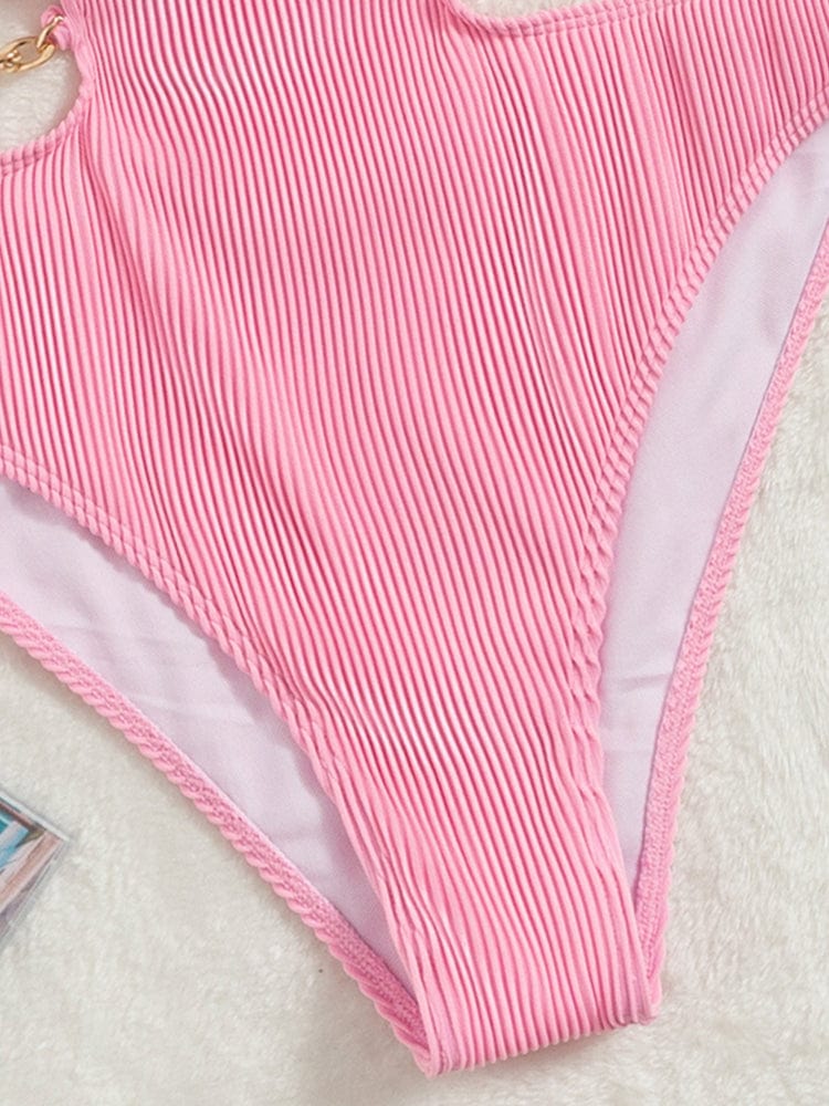 Odkryj swój letni look z tym jednoczęściowym kostiumem kąpielowym, który łączy w sobie nowoczesność i szyk. Wycięcia w talii oraz ramiączka z łańcuszkami sprawią, że będziesz wyglądać olśniewająco na plaży lub przy basenie.