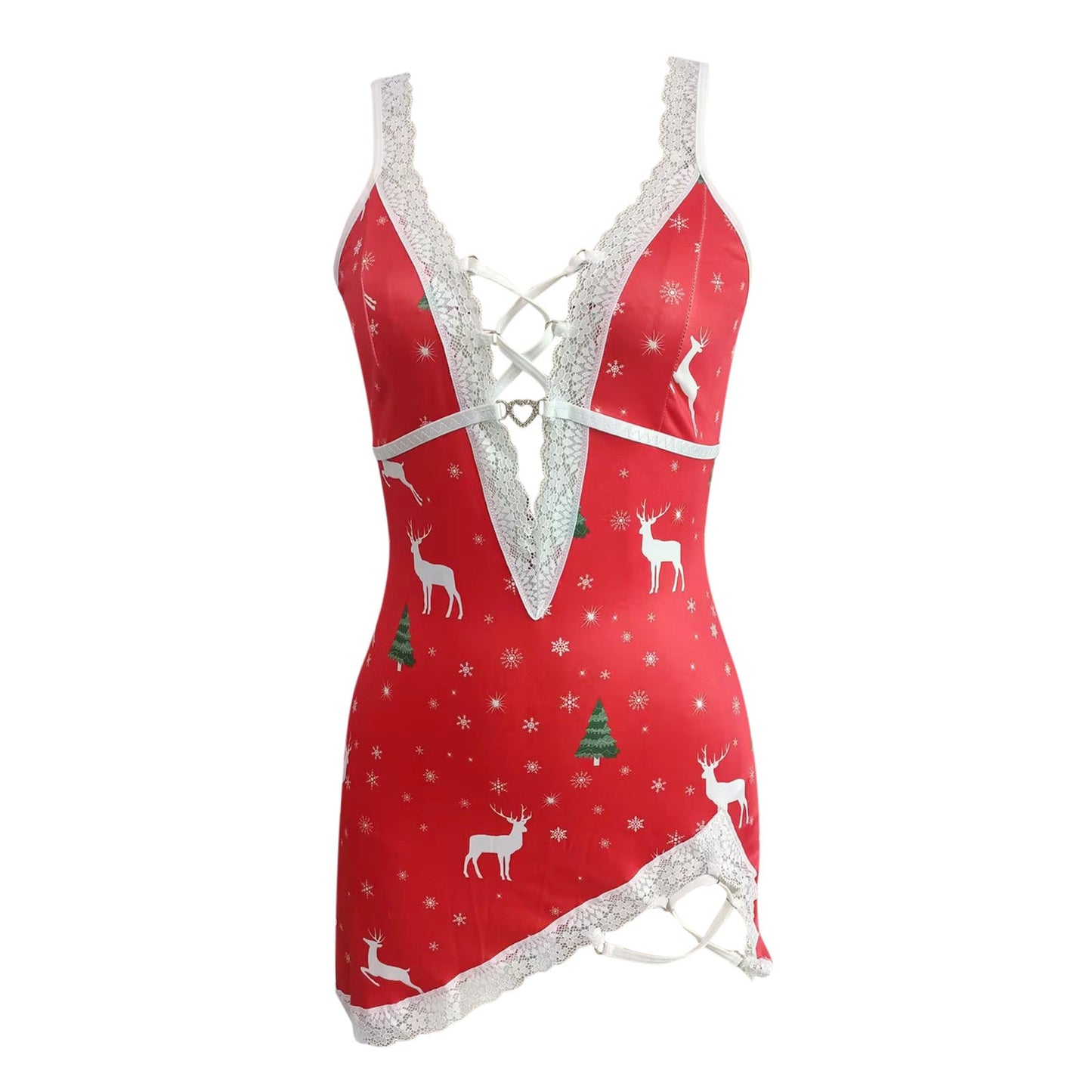 Świąteczna koszula nocna z koronką i wiązaniami