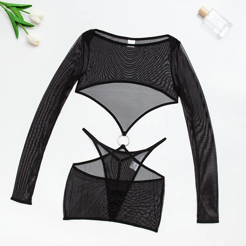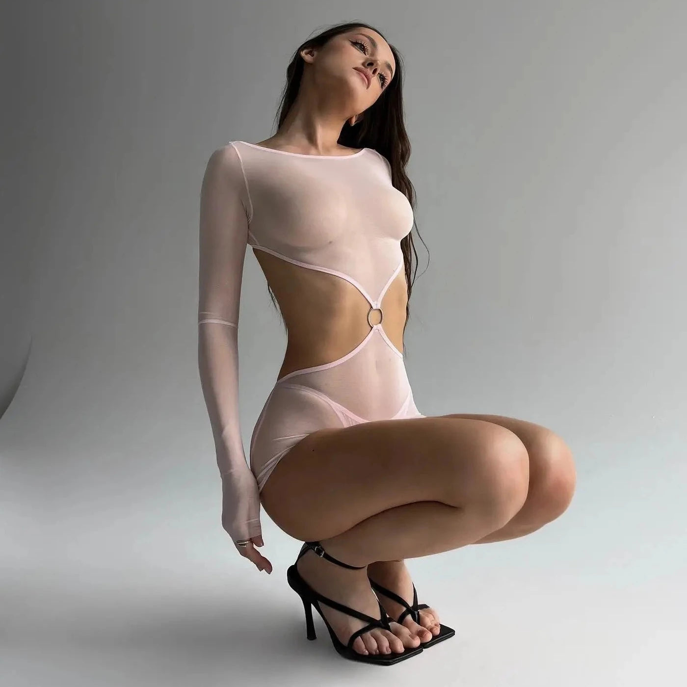 Zanurz się w subtelnej elegancji i zmysłowości naszej transparentnej sukienki z długim rękawem. Ta wyjątkowa kreacja łączy w sobie delikatność i odważny design, tworząc efektowny look idealny na wyjątkowe okazje. Lekko transparentny materiał subtelnie odsłania skórę, dodając kreacji zmysłowego charakteru. Wycięcia umieszczone strategicznie na sukience nadają jej nutę odwagi, jednocześnie pozostawiając miejsce na subtelne, romantyczne akcenty.