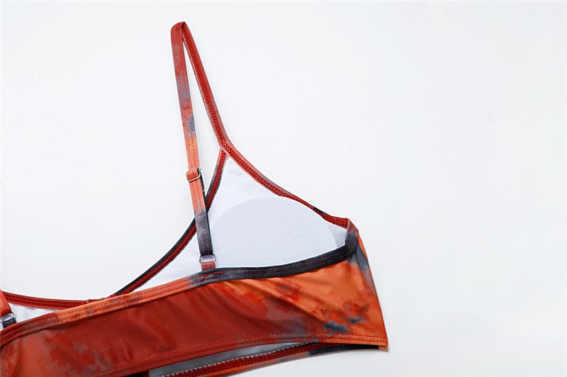 Regulowane ramiączka oraz podszycie w biuście zapewniają komfort i wsparcie, a modny wzór tie dye dodaje świeżości i oryginalności. Wykonanie z wysokiej jakości materiałów sprawia, że zestaw jest nie tylko stylowy, ale i praktyczny.