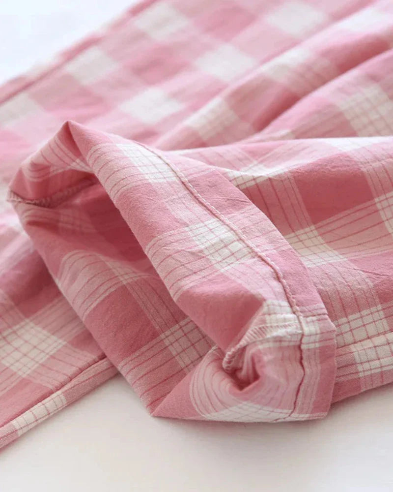 Wygodne luźne spodnie w kratę z szerokimi nogawkami