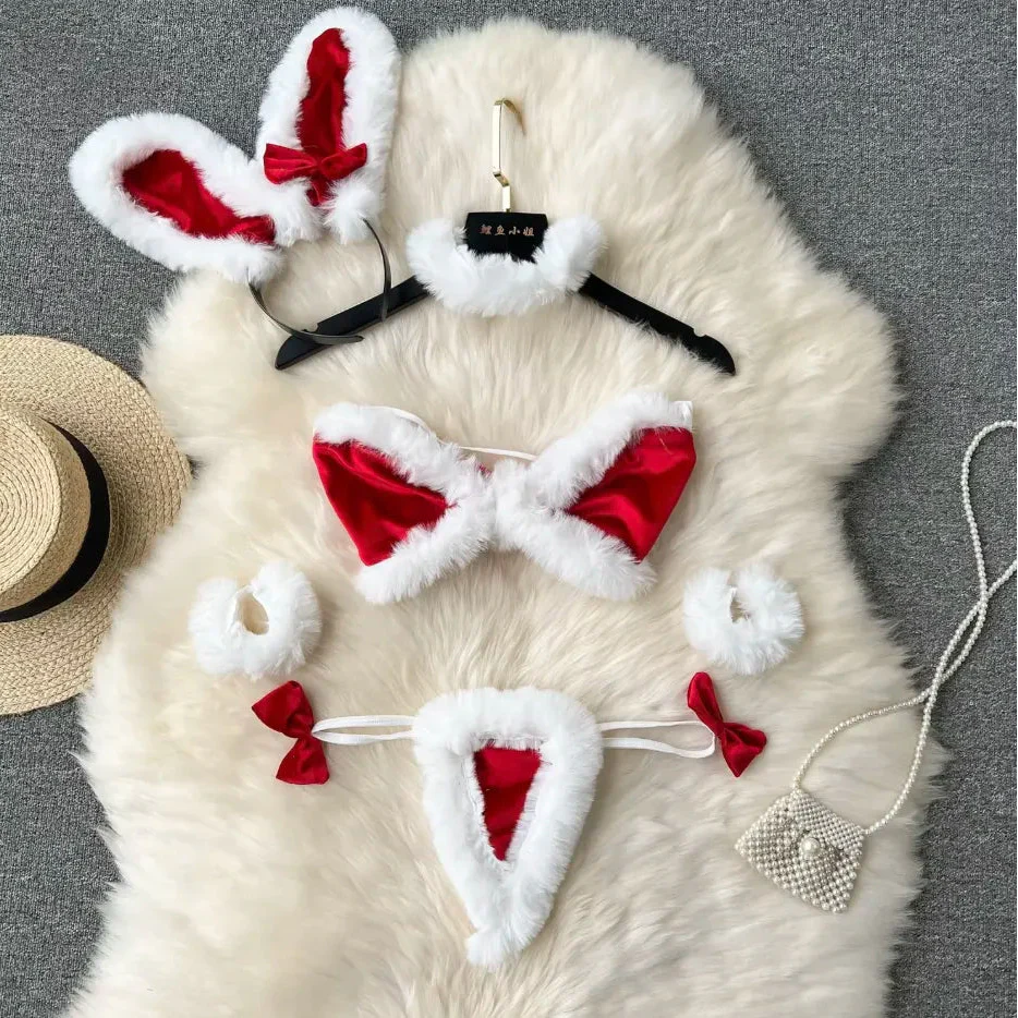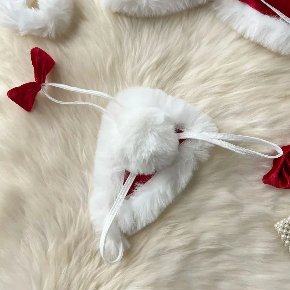 - Stringi: Pasujące majteczki, wykończone miękkim futerkiem i uroczymi kokardkami.