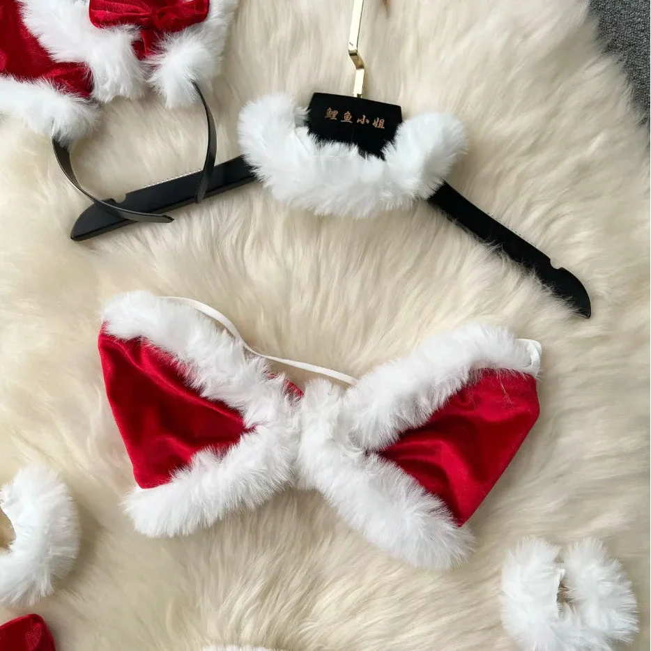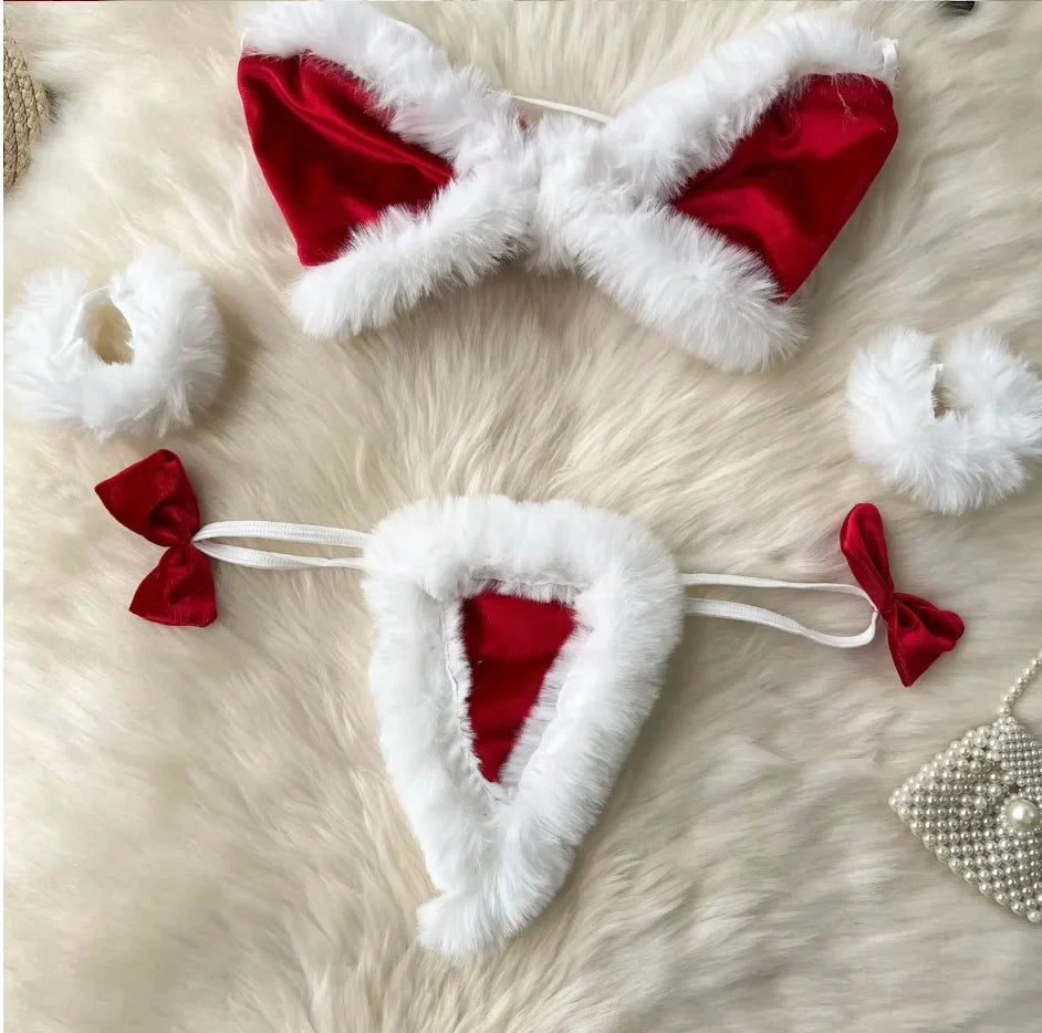Zmysłowy komplet bielizny świątecznej z puszkiem
