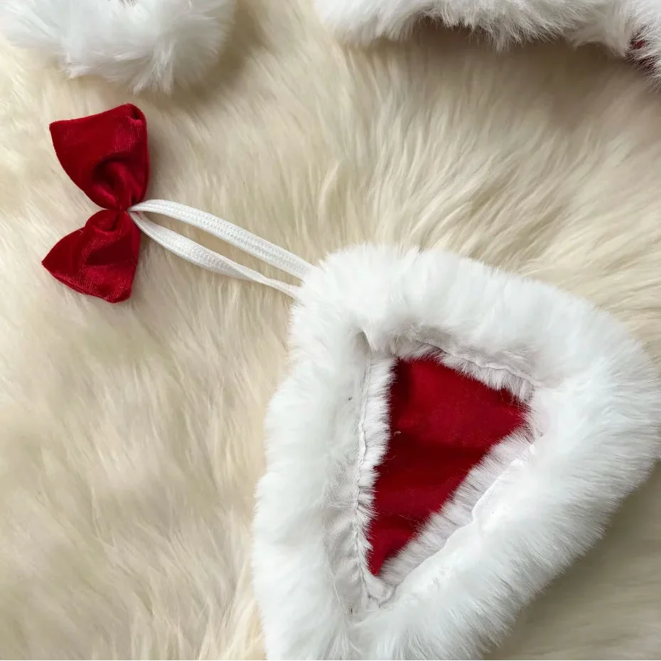 - Top: Miękki, wiązany top z delikatnym, białym futerkiem, nawiązujący do świątecznego stylu.